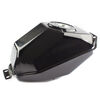 The fuel tank in a motorcycle stores and supplies fuel to the engine, ensuring a steady flow of fuel for combustion while also serving as a key component of the bike's design and ergonomics.