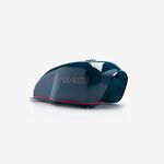 The fuel tank in a motorcycle stores and supplies fuel to the engine, ensuring a steady flow of fuel for combustion while also serving as a key component of the bike's design and ergonomics.