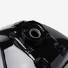 The fuel tank in a motorcycle stores and supplies fuel to the engine, ensuring a steady flow of fuel for combustion while also serving as a key component of the bike's design and ergonomics.