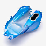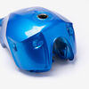 The fuel tank in a motorcycle stores and supplies fuel to the engine, ensuring a steady flow of fuel for combustion while also serving as a key component of the bike's design and ergonomics.