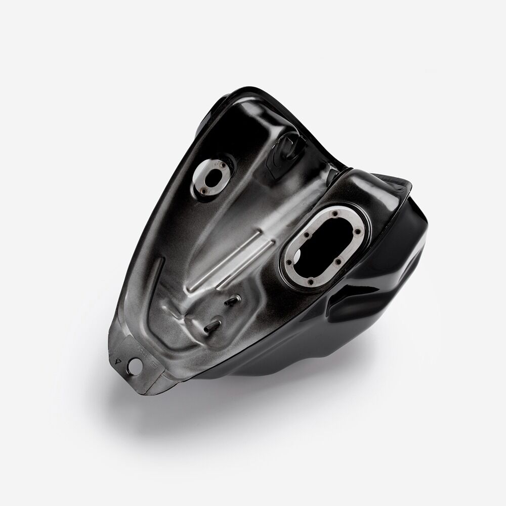 The fuel tank in a motorcycle stores and supplies fuel to the engine, ensuring a steady flow of fuel for combustion while also serving as a key component of the bike's design and ergonomics.