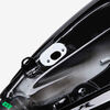 The fuel tank in a motorcycle stores and supplies fuel to the engine, ensuring a steady flow of fuel for combustion while also serving as a key component of the bike's design and ergonomics.