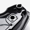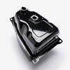 The fuel tank in a motorcycle stores and supplies fuel to the engine, ensuring a steady flow of fuel for combustion while also serving as a key component of the bike's design and ergonomics.