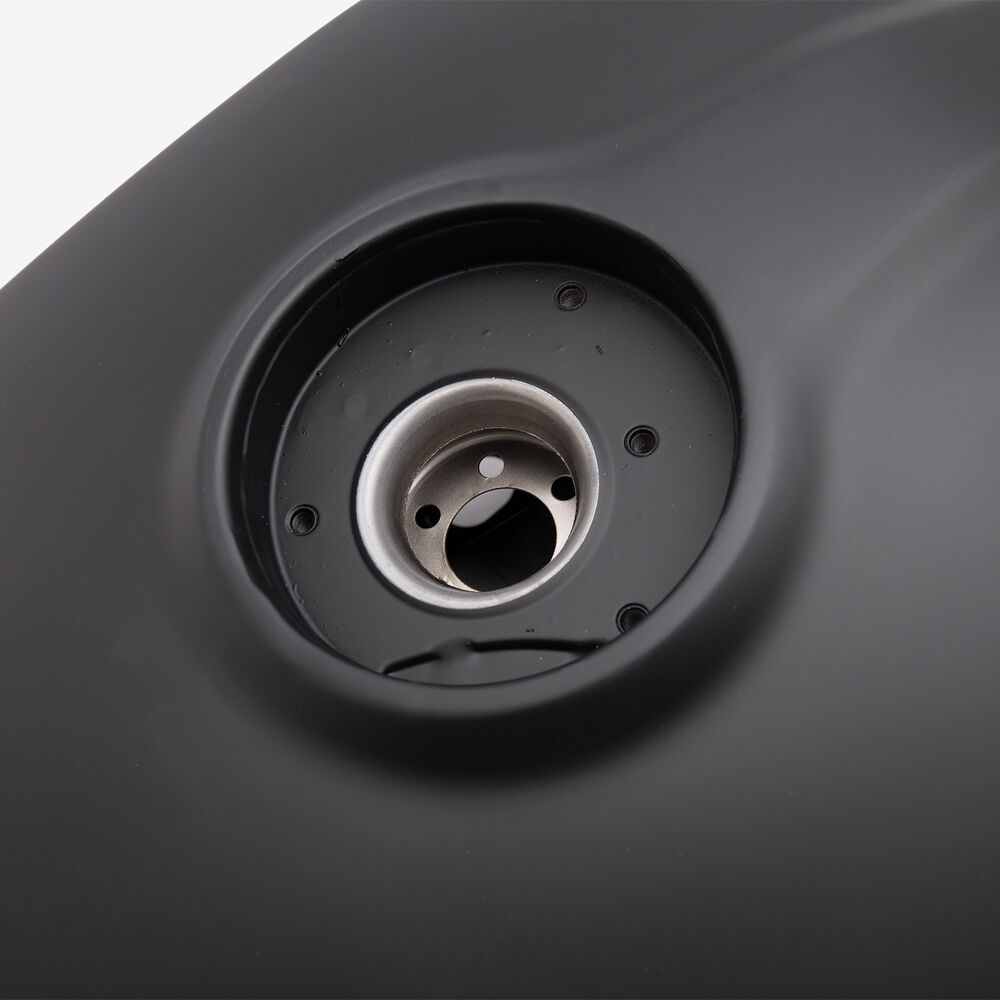 The fuel tank in a motorcycle stores and supplies fuel to the engine, ensuring a steady flow of fuel for combustion while also serving as a key component of the bike's design and ergonomics.