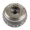 The flywheel in a motorcycle stores rotational energy from the engine, helping to smooth out power delivery and maintain consistent engine performance by reducing fluctuations in engine speed.