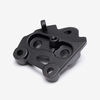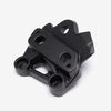 The footpeg bracket in a motorcycle mounts the footpegs securely to the frame, ensuring proper alignment and stability for the rider's foot while riding.