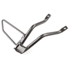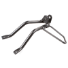 The footpeg bracket in a motorcycle mounts the footpegs securely to the frame, ensuring proper alignment and stability for the rider's foot while riding.