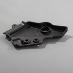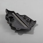 The footpeg frame cover in a motorcycle encases the frame around the footpegs, offering protection from debris and providing a finished appearance while ensuring the rider's foot area remains clean and secure.