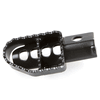 The right footpeg in a motorcycle offers a stable resting point for the rider's foot, aiding in balance and control while riding.