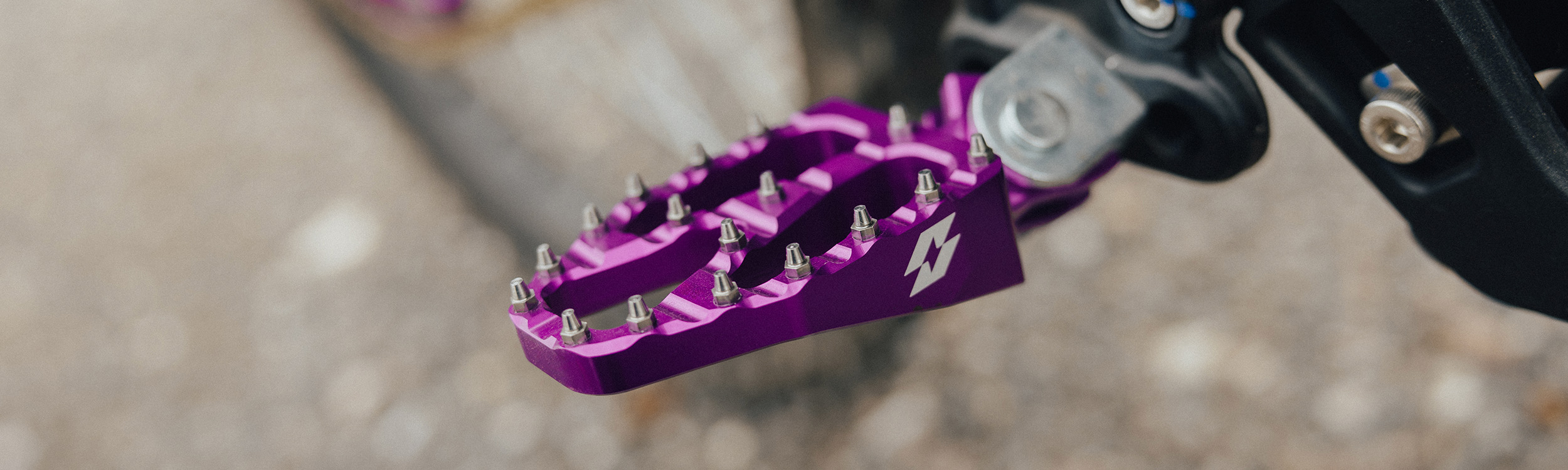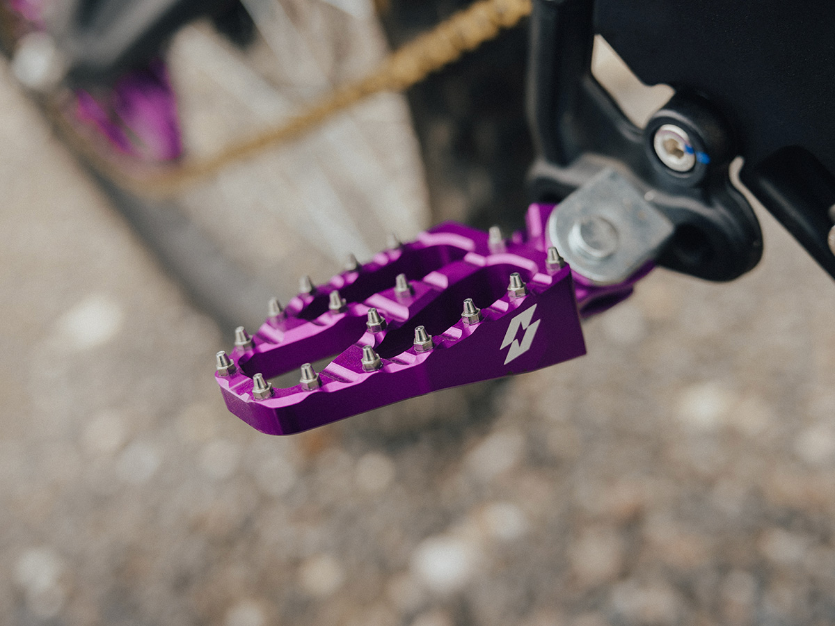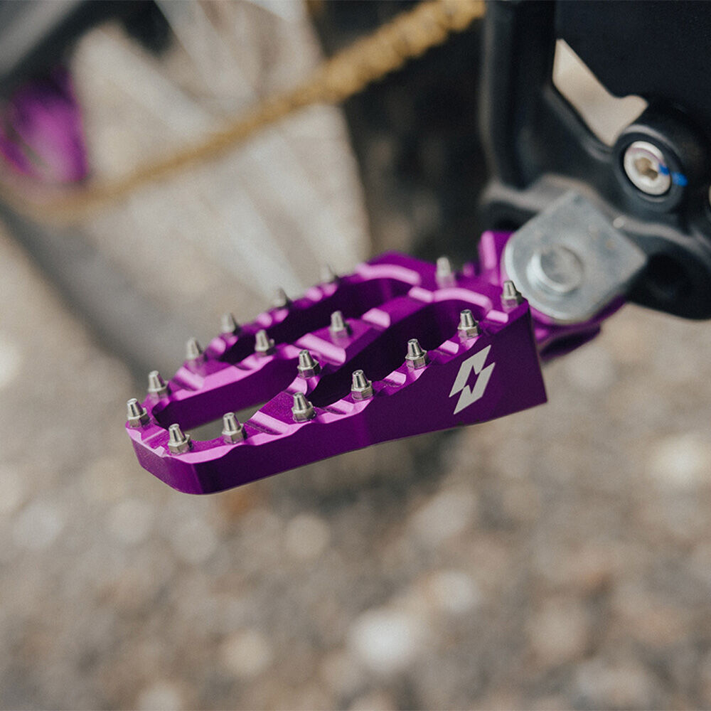 Upgrade your riding stance with our wide footpegs providing you with more stability control and comfort. Perfect for anyone riding out there for hours, racing or just simply wanting some cool upgraded pegs to match
