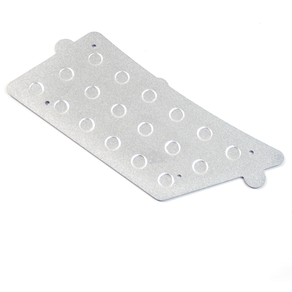 The metal foot plate in a motorcycle provides a durable and stable surface for the rider's foot, offering support and protection while enhancing grip and control during riding.