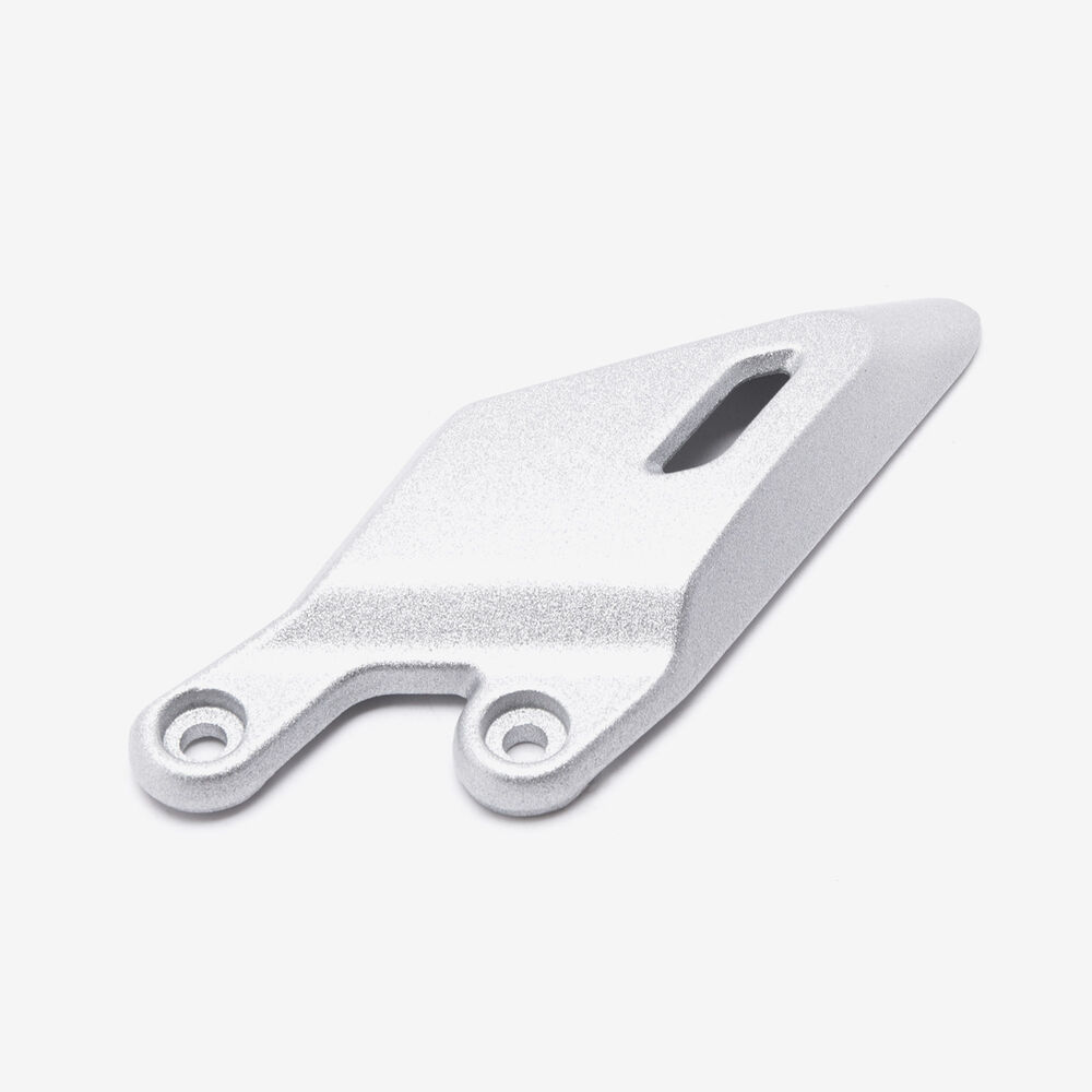 The metal foot plate in a motorcycle provides a durable and stable surface for the rider's foot, offering support and protection while enhancing grip and control during riding.