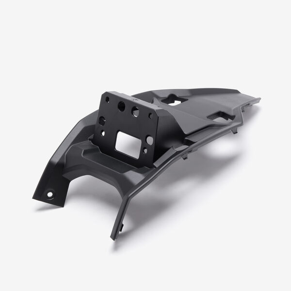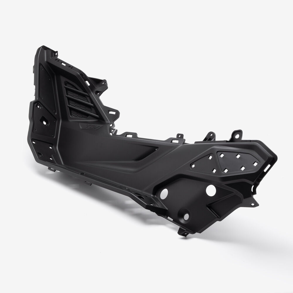 The metal foot plate in a motorcycle provides a durable and stable surface for the rider's foot, offering support and protection while enhancing grip and control during riding.