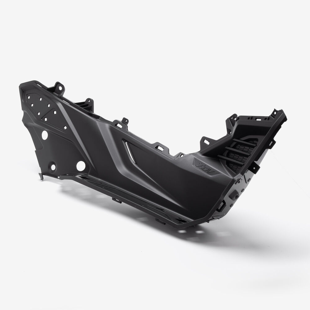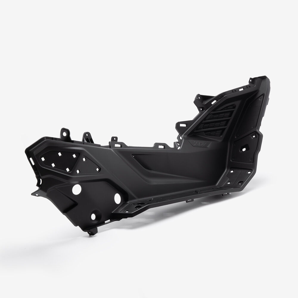 The metal foot plate in a motorcycle provides a durable and stable surface for the rider's foot, offering support and protection while enhancing grip and control during riding.