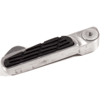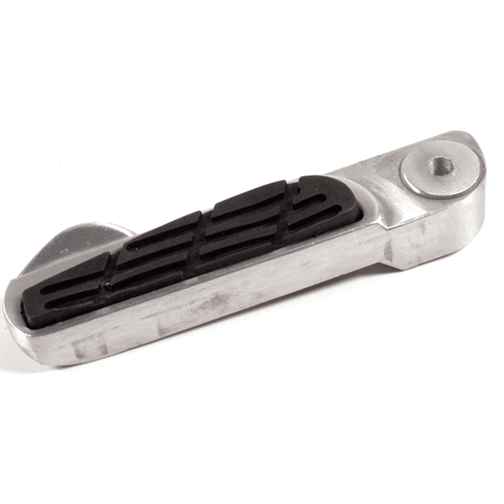 The footpeg in a motorcycle offers a stable resting point for the rider's foot, aiding in balance and control while riding.