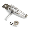 The footpeg in a motorcycle offers a stable resting point for the rider's foot, aiding in balance and control while riding.