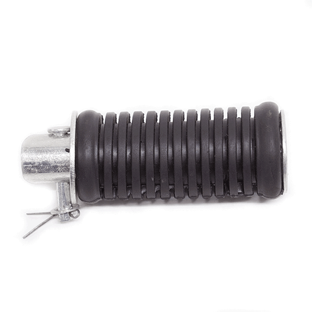 The footpeg in a motorcycle offers a stable resting point for the rider's foot, aiding in balance and control while riding.