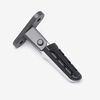 The footpeg in a motorcycle offers a stable resting point for the rider's foot, aiding in balance and control while riding.