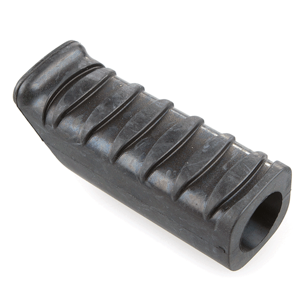 The footpeg in a motorcycle offers a stable resting point for the rider's foot, aiding in balance and control while riding.