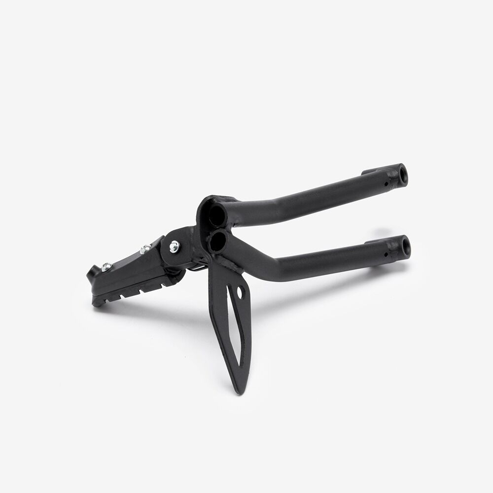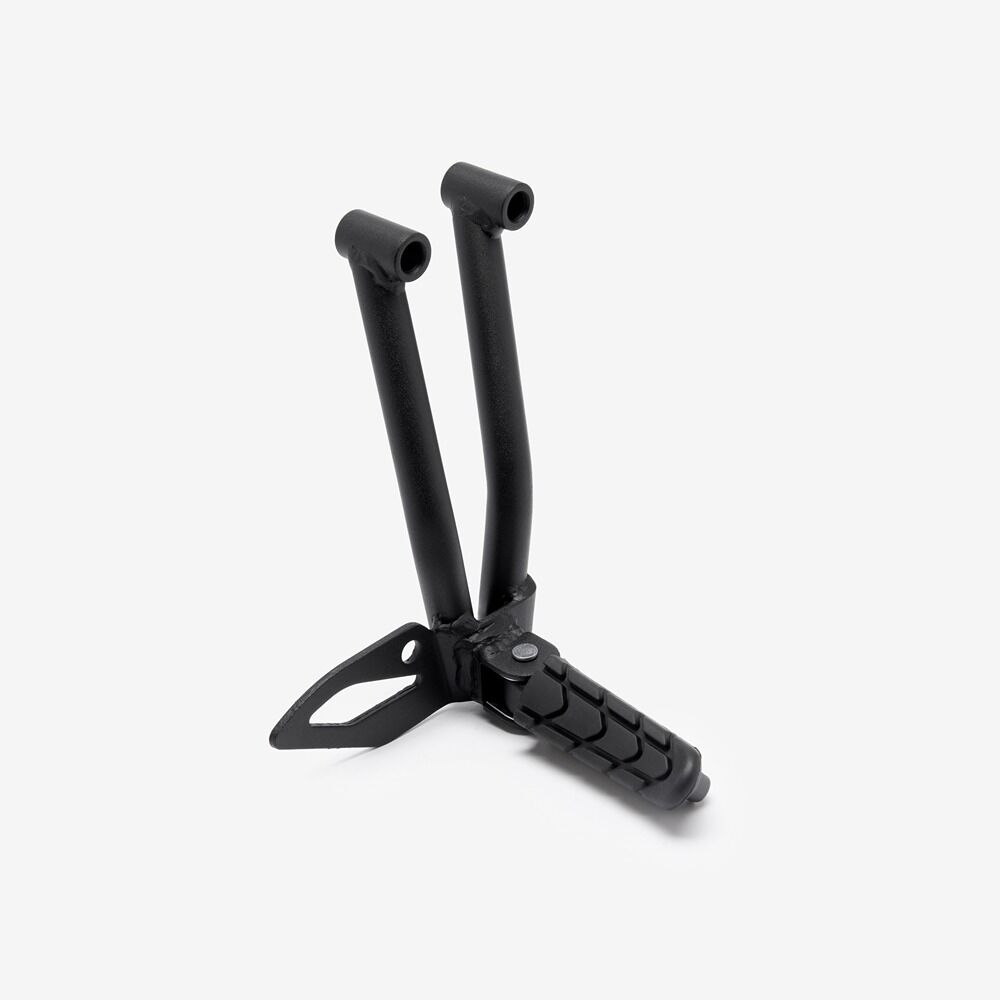 The footpeg in a motorcycle offers a stable resting point for the rider's foot, aiding in balance and control while riding.