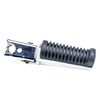 The footpeg in a motorcycle offers a stable resting point for the rider's foot, aiding in balance and control while riding.