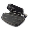 The footpeg in a motorcycle offers a stable resting point for the rider's foot, aiding in balance and control while riding.