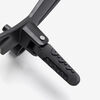 The footpeg in a motorcycle offers a stable resting point for the rider's foot, aiding in balance and control while riding.