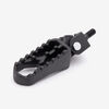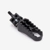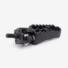 The footpeg in a motorcycle offers a stable resting point for the rider's foot, aiding in balance and control while riding.