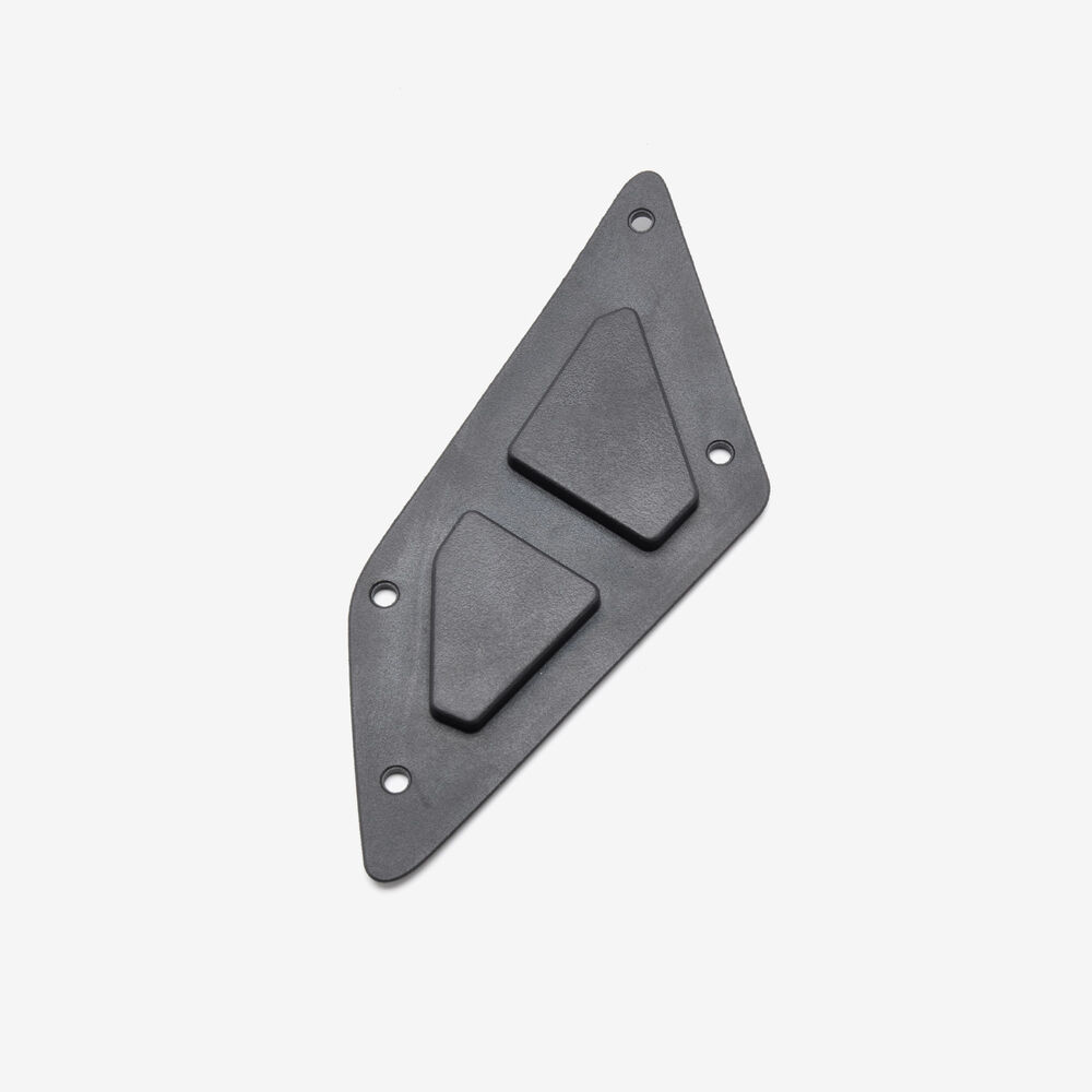 The footpeg rubber in a motorcycle provides cushioning and grip on the footpeg, enhancing rider comfort and reducing vibrations while riding.