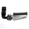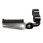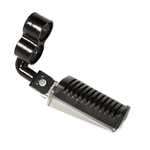 The footpeg with bracket in a motorcycle provides a secure place for the rider's foot while riding, supporting weight and aiding in balance, with the bracket ensuring proper attachment to the frame.
