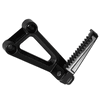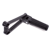 The footpeg with bracket in a motorcycle provides a secure place for the rider's foot while riding, supporting weight and aiding in balance, with the bracket ensuring proper attachment to the frame.