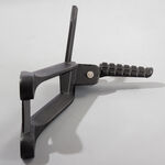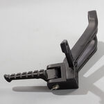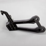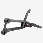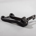 The footpeg with bracket in a motorcycle provides a secure place for the rider's foot while riding, supporting weight and aiding in balance, with the bracket ensuring proper attachment to the frame.