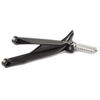 The footpeg with bracket in a motorcycle provides a secure place for the rider's foot while riding, supporting weight and aiding in balance, with the bracket ensuring proper attachment to the frame.