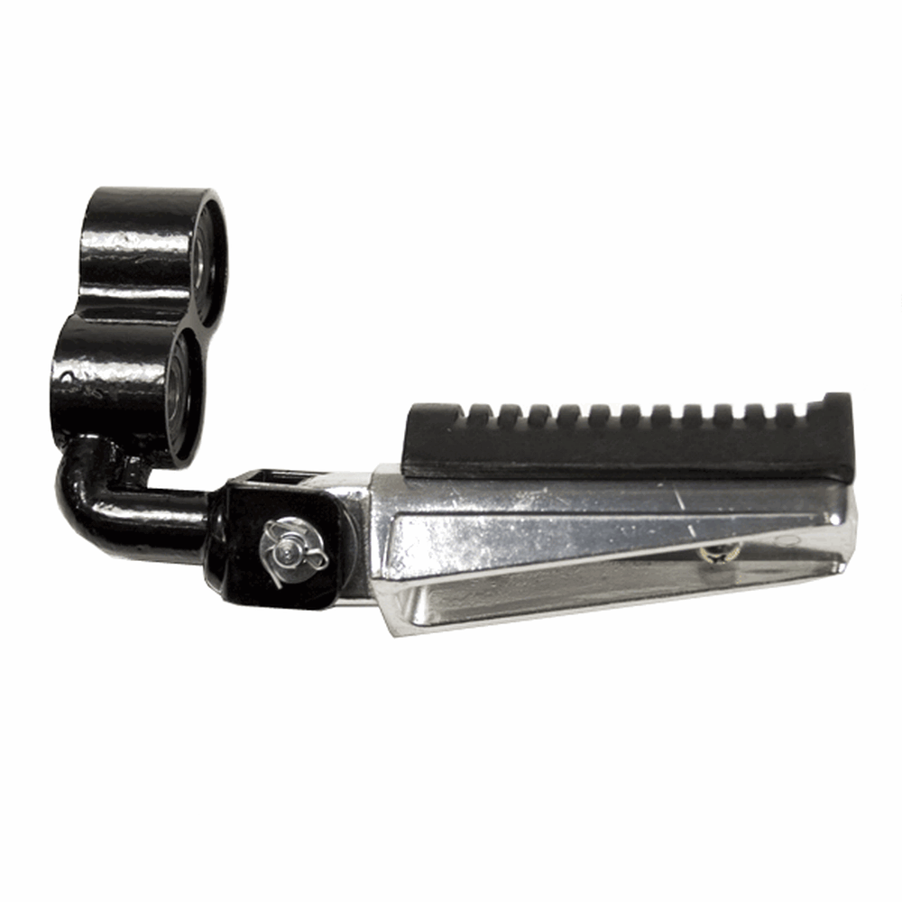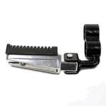 The footpeg with bracket in a motorcycle provides a secure place for the rider's foot while riding, supporting weight and aiding in balance, with the bracket ensuring proper attachment to the frame.