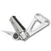 The footpeg with bracket in a motorcycle provides a secure place for the rider's foot while riding, supporting weight and aiding in balance, with the bracket ensuring proper attachment to the frame.