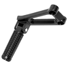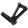 The footpeg with bracket in a motorcycle provides a secure place for the rider's foot while riding, supporting weight and aiding in balance, with the bracket ensuring proper attachment to the frame.