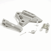 The footpeg with bracket in a motorcycle provides a secure place for the rider's foot while riding, supporting weight and aiding in balance, with the bracket ensuring proper attachment to the frame.