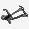 The footpeg with bracket in a motorcycle provides a secure place for the rider's foot while riding, supporting weight and aiding in balance, with the bracket ensuring proper attachment to the frame.