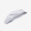 A front fender on a motorcycle is a protective piece mounted above the front wheel. Its primary function is to shield the rider and the bike’s components from dirt, debris, and water kicked up by the wheel during riding. The front fender also helps with aerodynamics and provides a sleek, stylish look to the bike. It is usually made of durable materials like plastic, fiberglass, or carbon fiber, designed to absorb impacts while remaining lightweight.