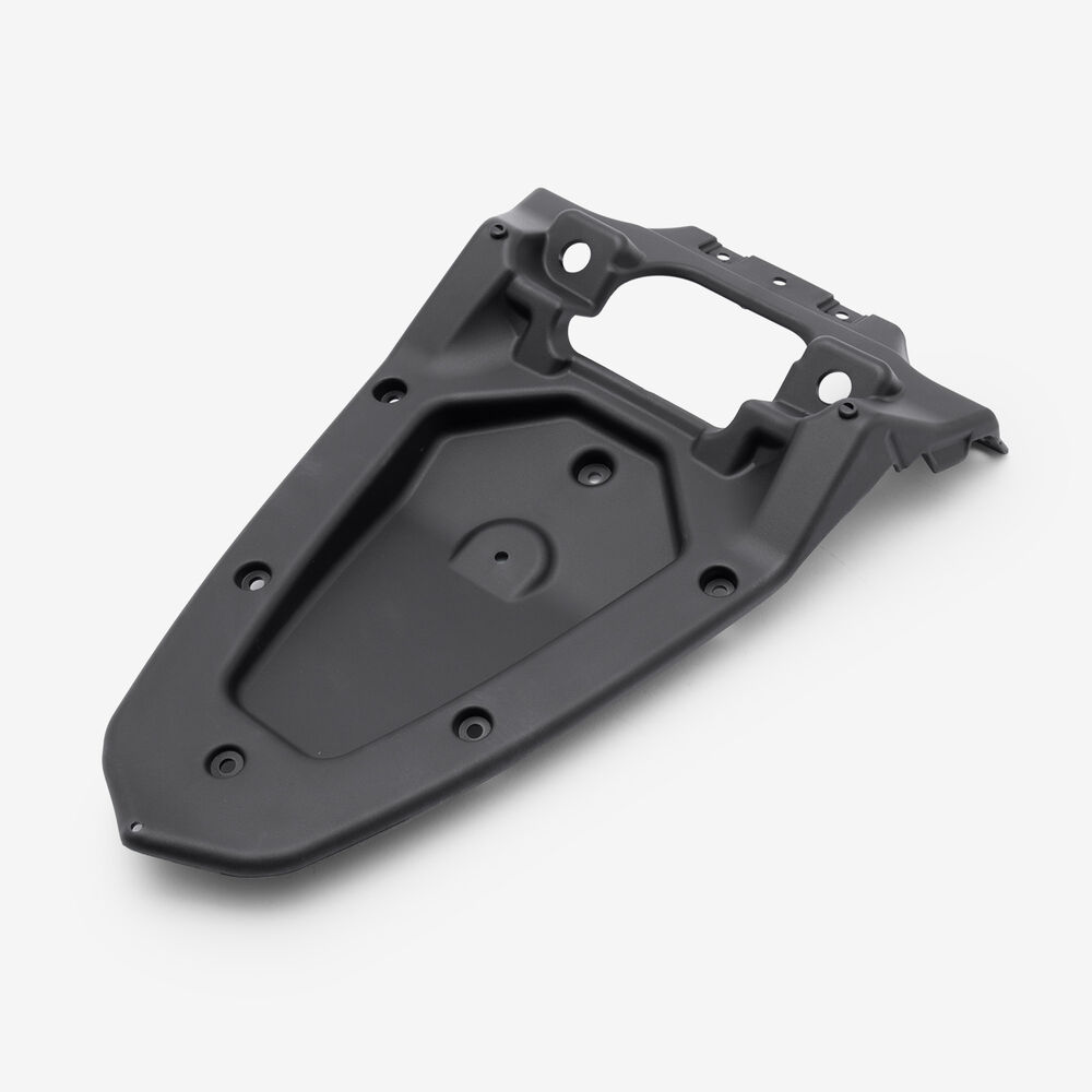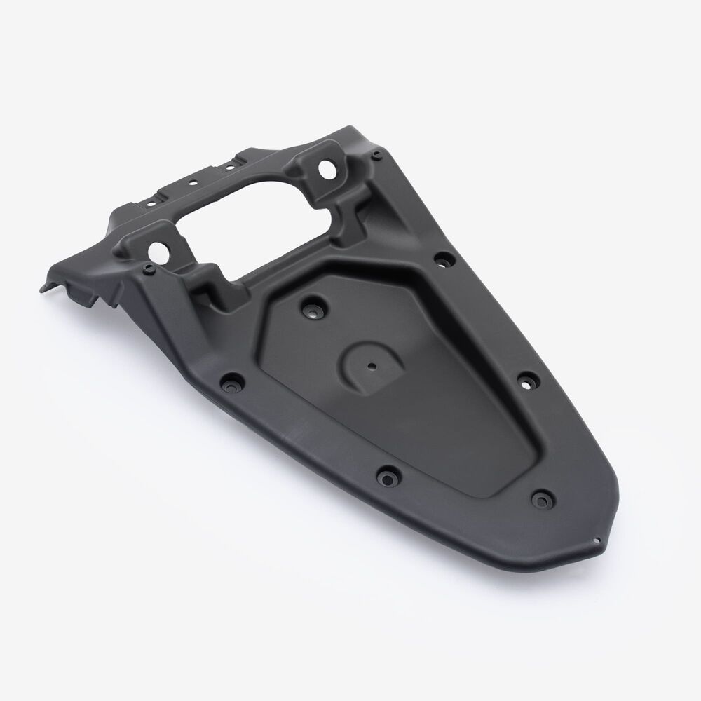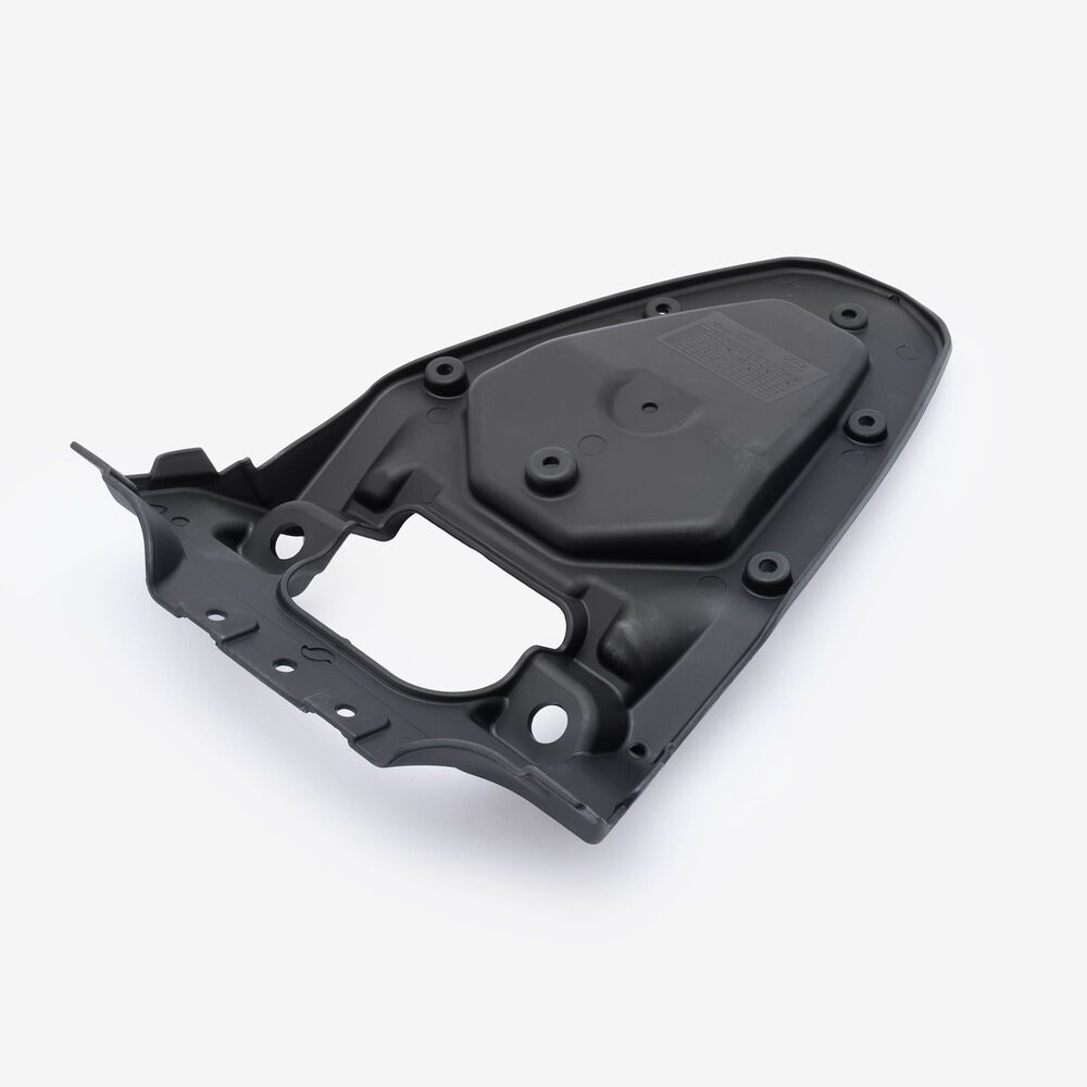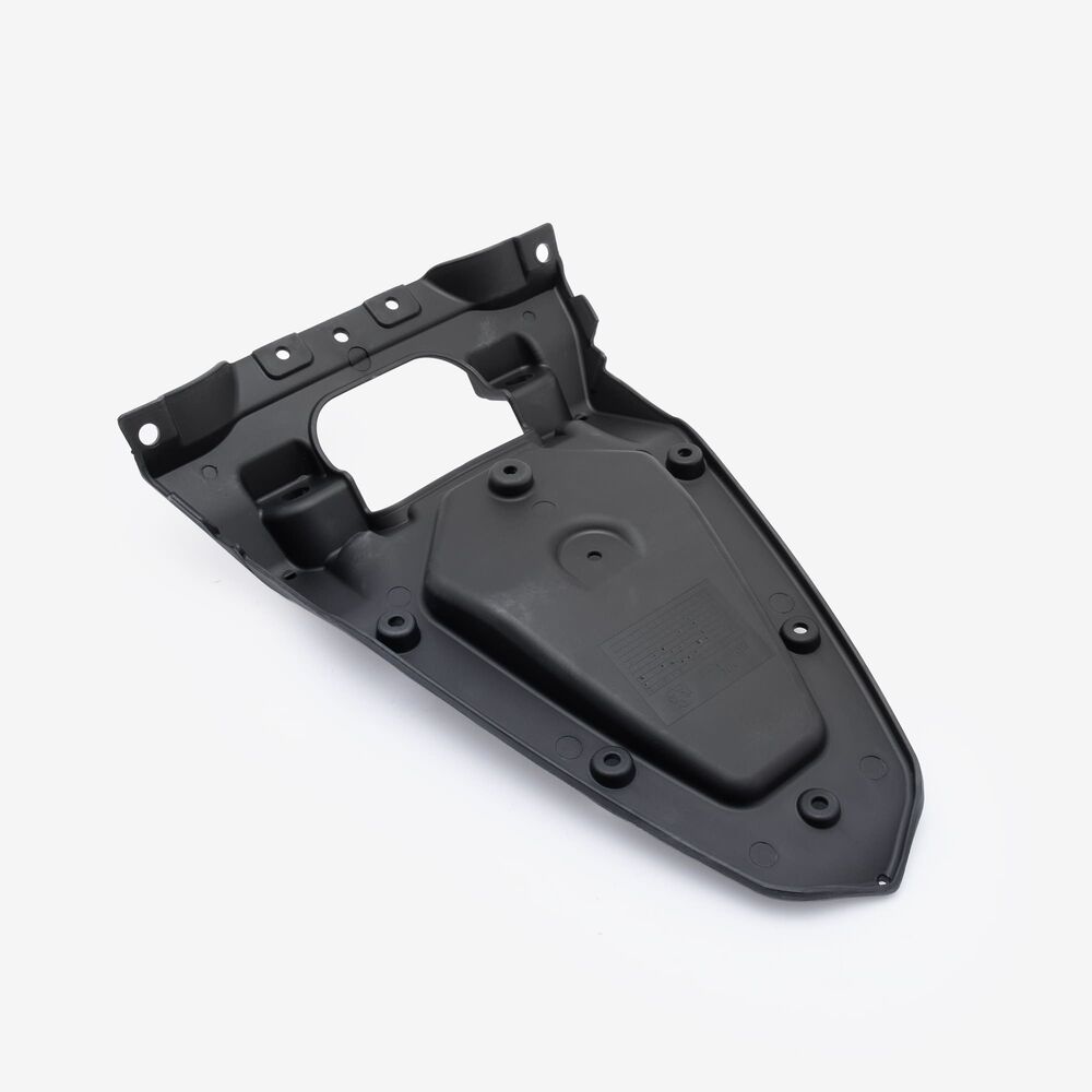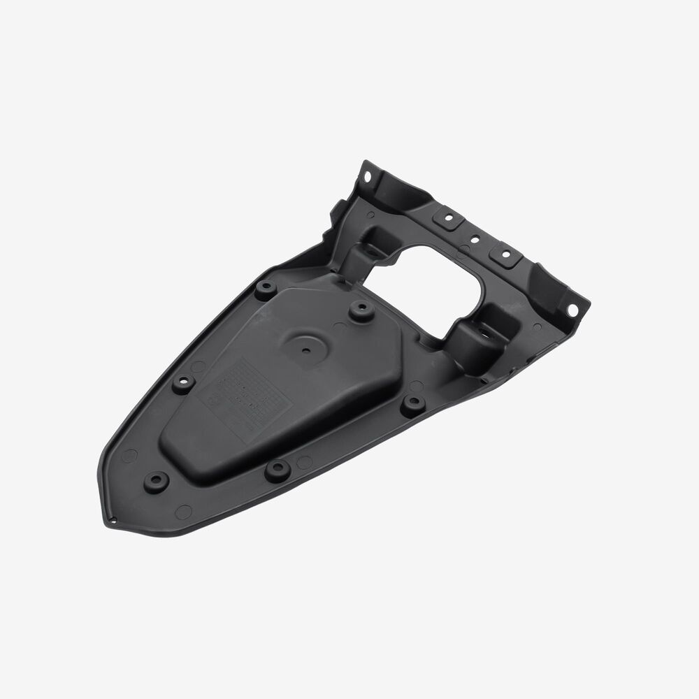 An inner front fender on a motorcycle is the part located inside the front wheel arch, mounted to the fork or frame. It helps protect the motorcycle's engine, wiring, and other components from debris, water, and mud kicked up by the front tire. The inner front fender also contributes to the overall appearance and aerodynamics of the bike. Typically made from lightweight materials like plastic or fiberglass, it ensures that dirt and water are redirected away from sensitive areas.