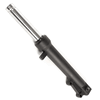 The left suspension fork in a motorcycle supports the front wheel, absorbs shocks from the road, and provides stability and control during riding, contributing to overall handling and comfort.