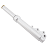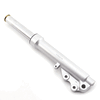 The left suspension fork in a motorcycle supports the front wheel, absorbs shocks from the road, and provides stability and control during riding, contributing to overall handling and comfort.