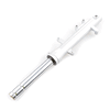 The left suspension fork in a motorcycle supports the front wheel, absorbs shocks from the road, and provides stability and control during riding, contributing to overall handling and comfort.
