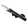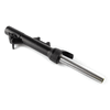 The left suspension fork in a motorcycle supports the front wheel, absorbs shocks from the road, and provides stability and control during riding, contributing to overall handling and comfort.
