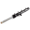 The left suspension fork in a motorcycle supports the front wheel, absorbs shocks from the road, and provides stability and control during riding, contributing to overall handling and comfort.