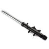 The left suspension fork in a motorcycle supports the front wheel, absorbs shocks from the road, and provides stability and control during riding, contributing to overall handling and comfort.