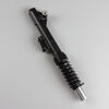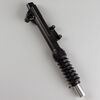 The left suspension fork in a motorcycle supports the front wheel, absorbs shocks from the road, and provides stability and control during riding, contributing to overall handling and comfort.
