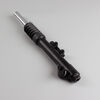 The left suspension fork in a motorcycle supports the front wheel, absorbs shocks from the road, and provides stability and control during riding, contributing to overall handling and comfort.