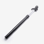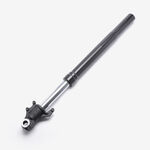 The right suspension fork in a motorcycle supports the front wheel, absorbs shocks from the road, and provides stability and control during riding, contributing to overall handling and comfort.