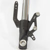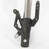 The right suspension fork in a motorcycle supports the front wheel, absorbs shocks from the road, and provides stability and control during riding, contributing to overall handling and comfort.